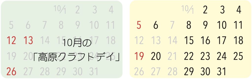 飯田高原店は月に2回ほど「高原クラフトデイ」としてワークショップをメインとして営業いたします。飯田高原店の2025年の営業は11月末までです。