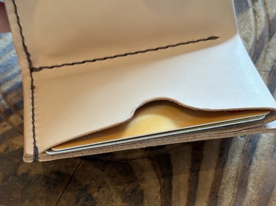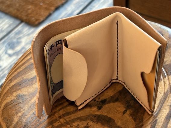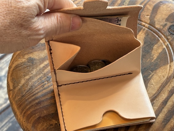 札を畳まずに入れられ、コインも取りやすく、カードも数枚入ります。ホックもないので壊れるところがない、数十年に渡って使える財布です。